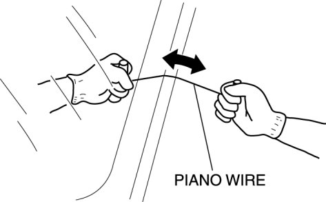 - For the areas of the sealant that are difficult to cut, use thepiano wire and follow the procedure under "Reusing Windshield".