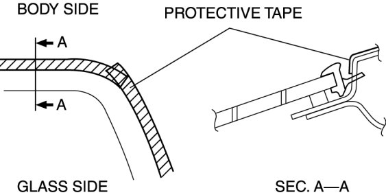 - Before removing the windshield from the body, mark the position of the windshield by affixing tape to the windshield and body panel.
