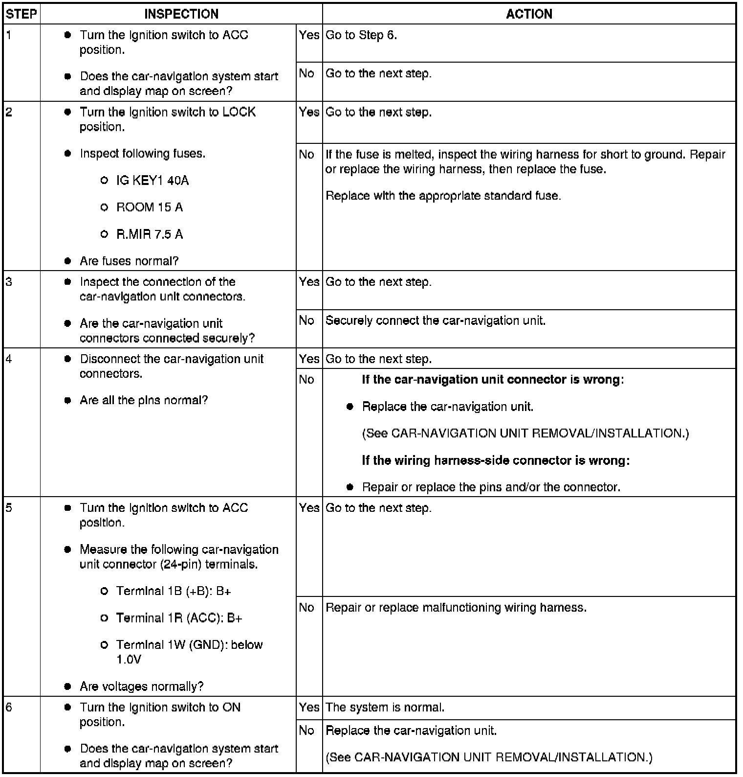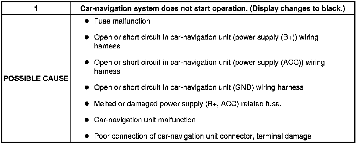 No.1 Car-Navigation System Does Not Start Operation. (Display Changes to Back.) - Car-Navigation System
