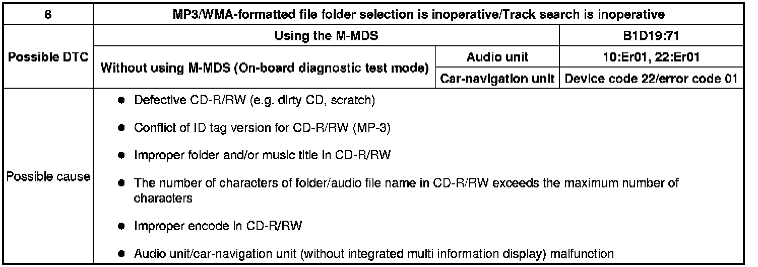 No.8 MP3/WMA-Formatted File Folder Selection Is Inoperative/Track Search Is Inoperative