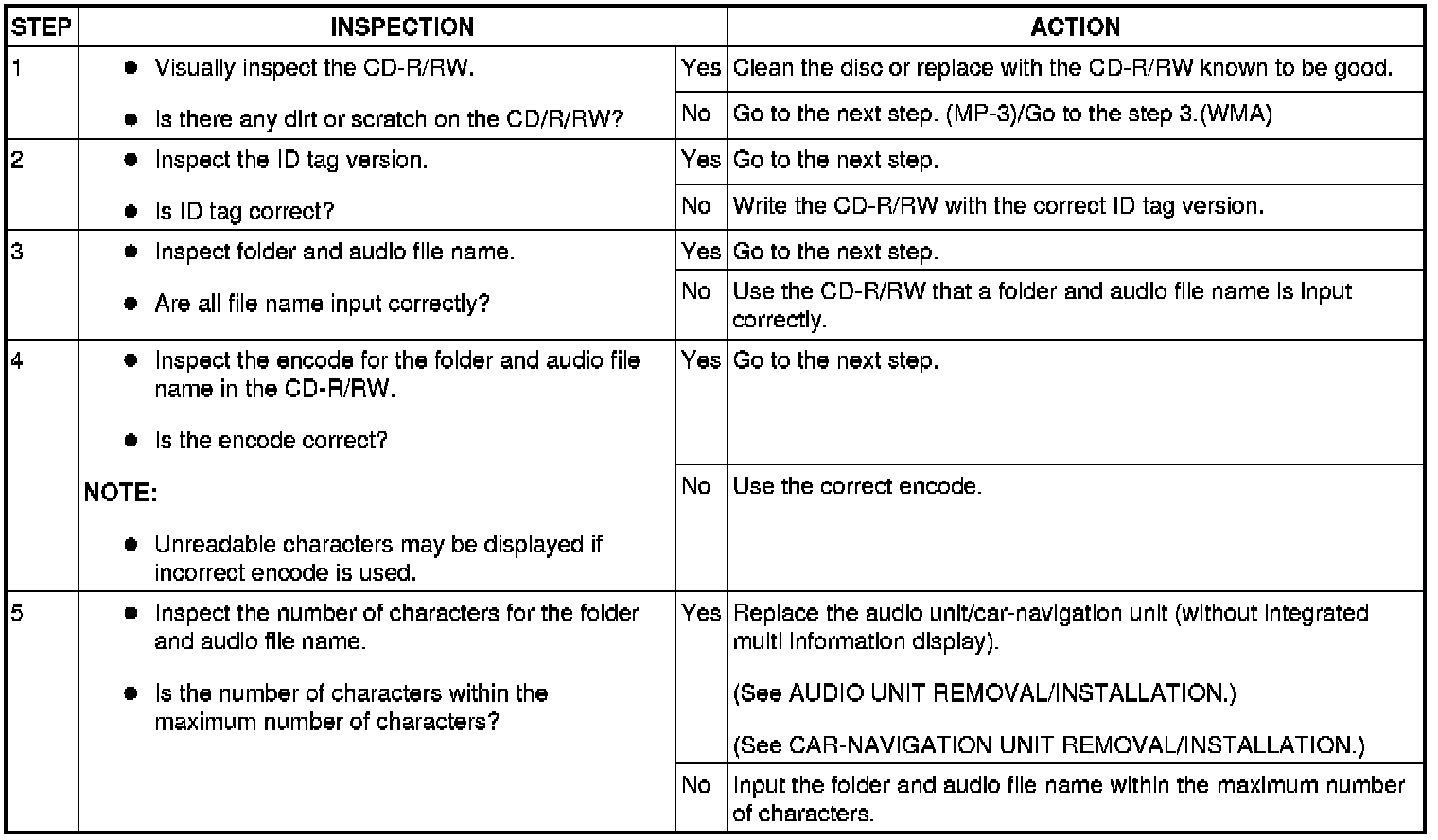 NO.8 MP3/WMA-FORMATTED FILE FOLDER SELECTION IS INOPERATIVE/TRACK SEARCH IS INOPERATIVE [CD PLAYER/CHANGER]