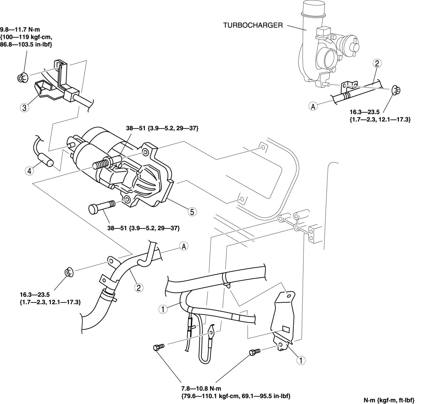 - When the battery cables are connected, touching the vehicle body with starter terminal B will generate sparks. This can cause personal injury, fire, and damage to the electrical components. Always disconnect the negative battery cable before performing the following operation.