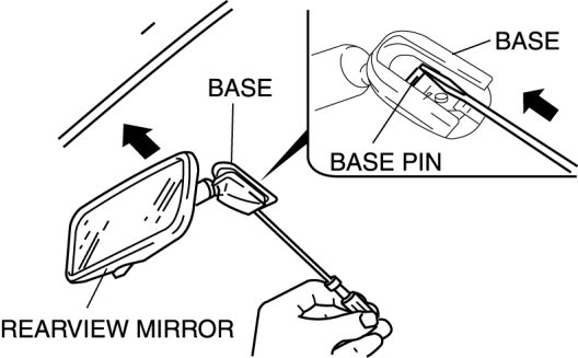 2. Push the base pin down to remove the rearview mirror.