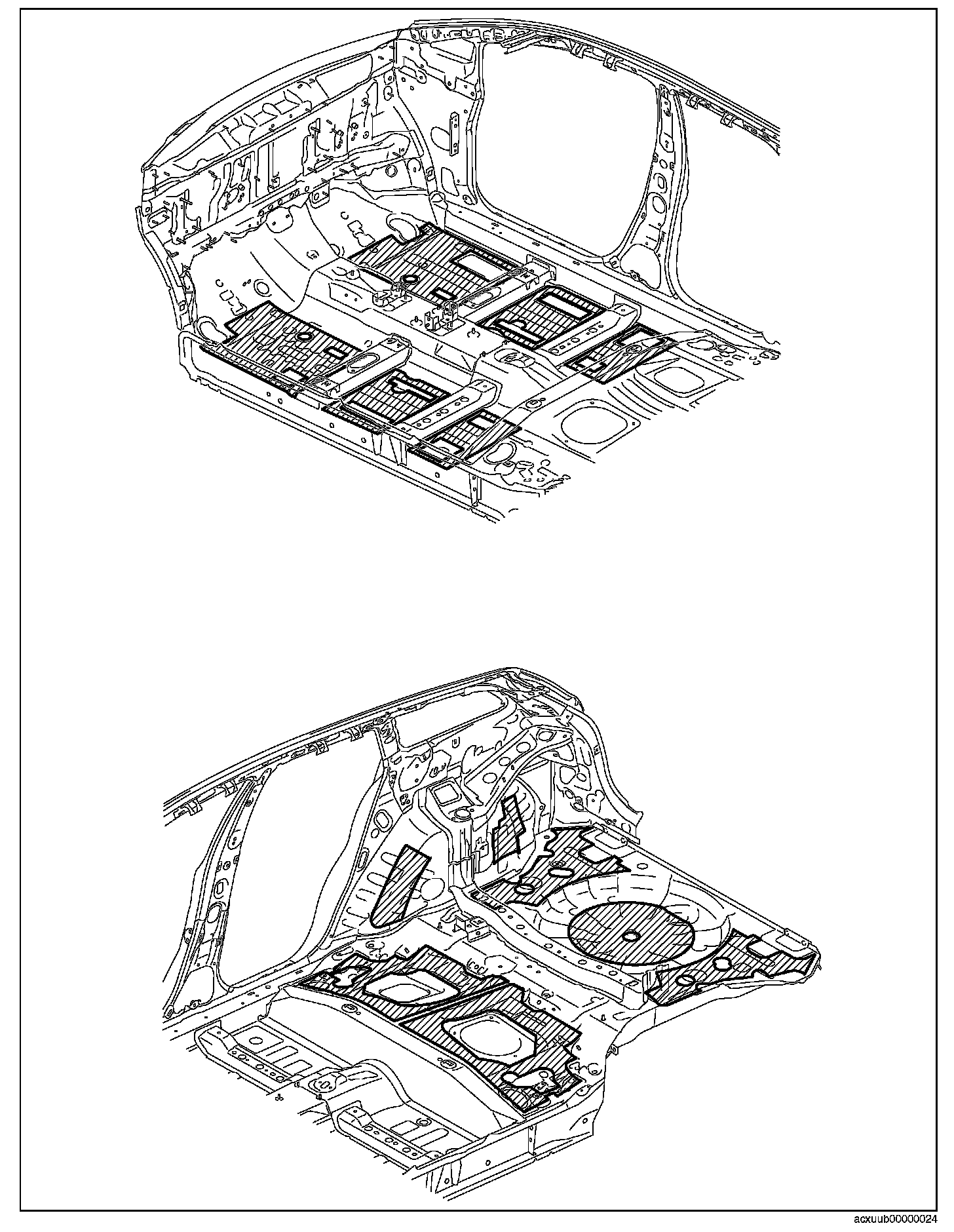 After repairing the body, attach the dumping sheet to the location shown in the figure for noise insulation.