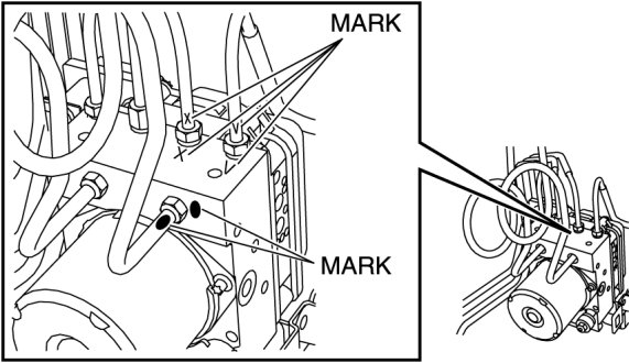 1. Place an alignment mark on the brake pipe and DSC HU/CM.