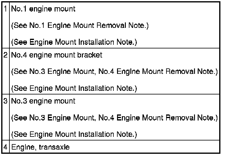 No.3 Engine Mount, No.4 Engine Mount Removal Note