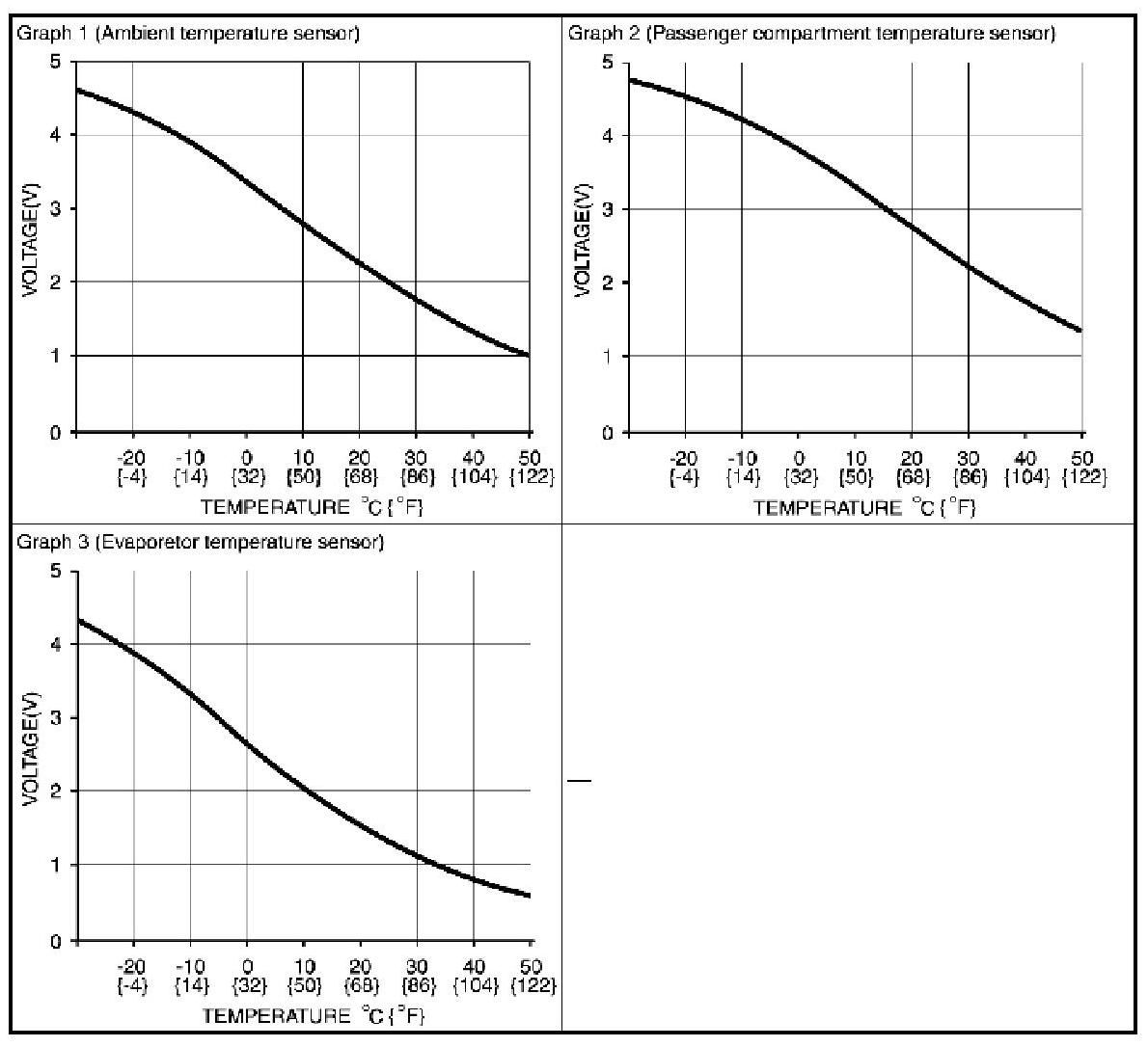 5. By inserting the positive (+) lead of the tester into each climate control unit terminal, measure the voltage according to the terminal voltage table.