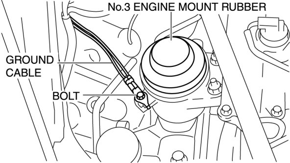 3. Disconnect the ground cable installed to No.3 engine mount rubber.