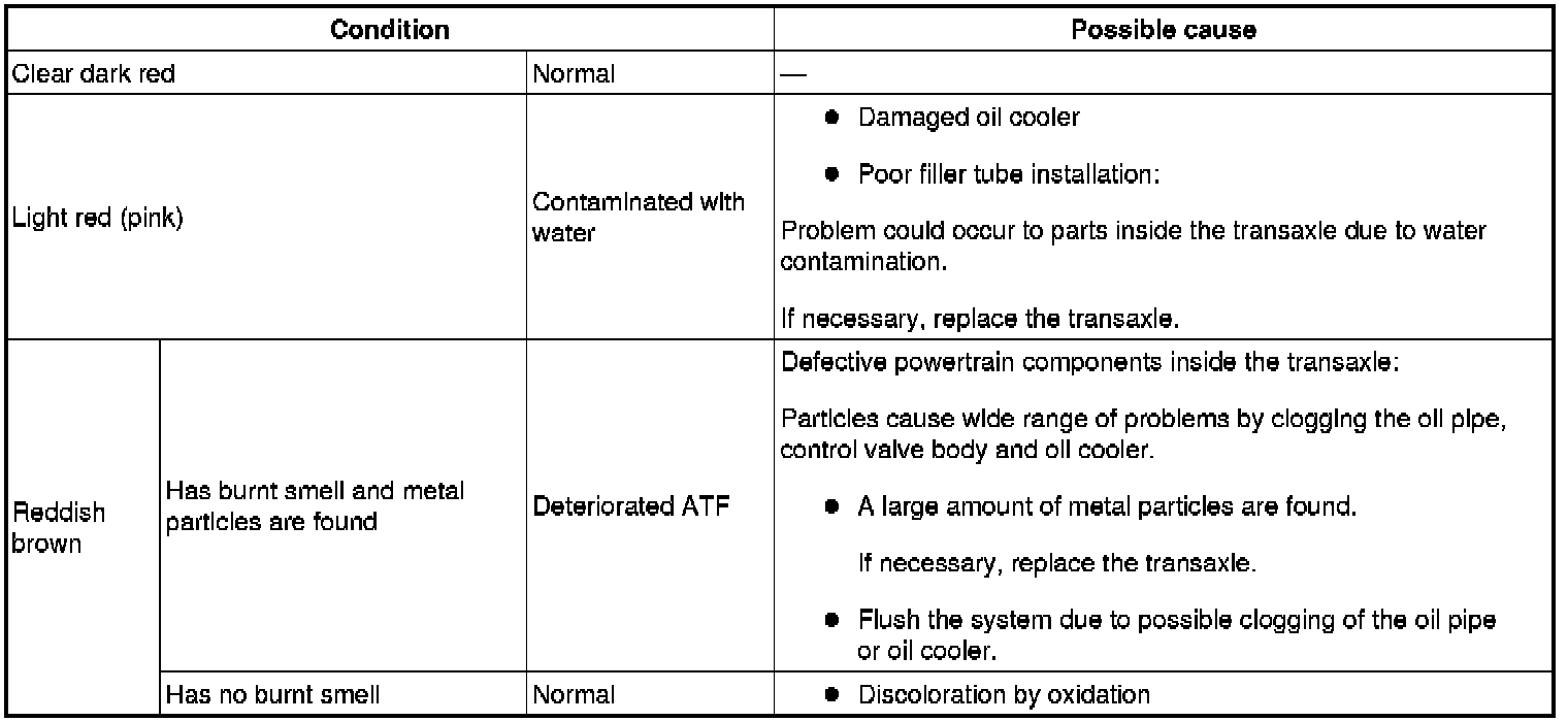 1. Inspect the ATF for the following to determine whether the transaxle should be disassembled.