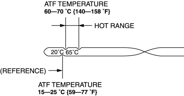 8. Verify that the ATF level is in the HOT range(65 °C {149 °F}) while the engine is idling.