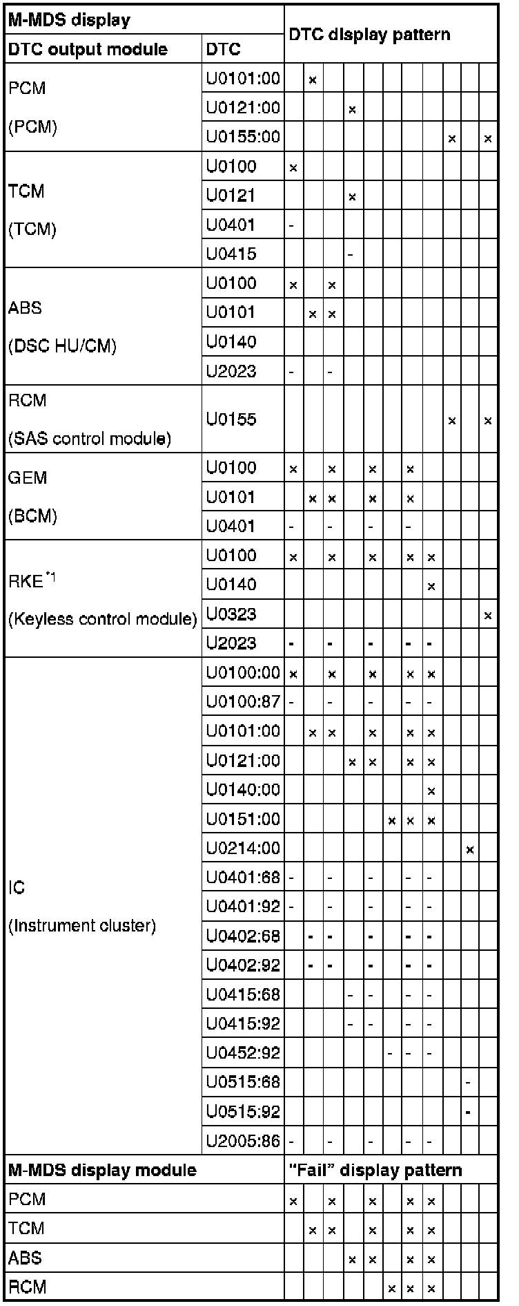 - A hyphen " - " in the DTC output pattern table indicates that the DTC may be displayed depending on the malfunction detection conditions. If only an " x " is indicated, it means the DTC will not be displayed.