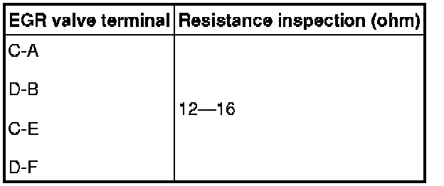 3. Measure the resistance between the EGR valve terminals.