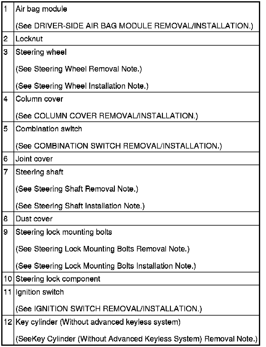 STEERING WHEEL AND COLUMN REMOVAL/INSTALLATION