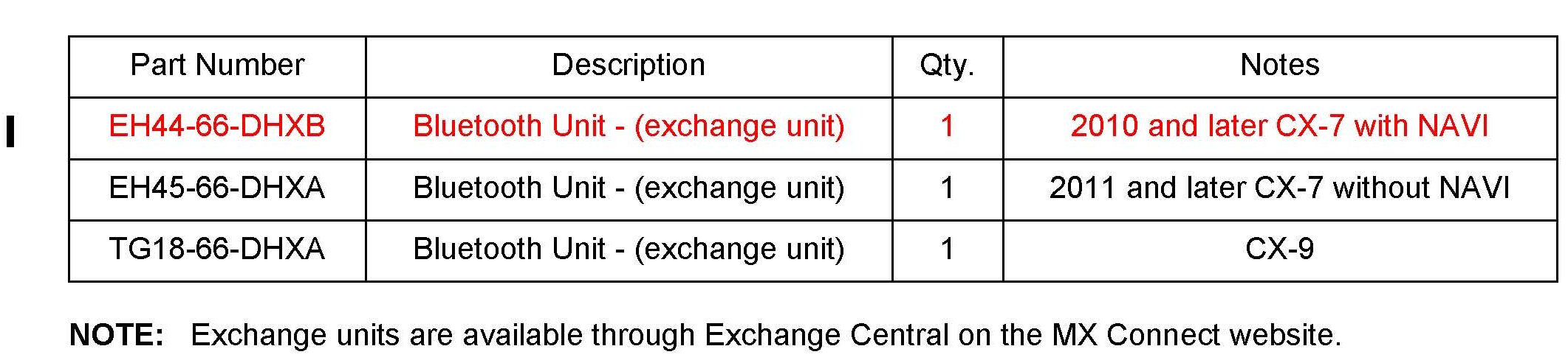 3. Replace the Bluetooth unit (with an exchange unit available through Exchange Central on the MX Connect website) according to the M53 online instructions or the Workshop Manual.