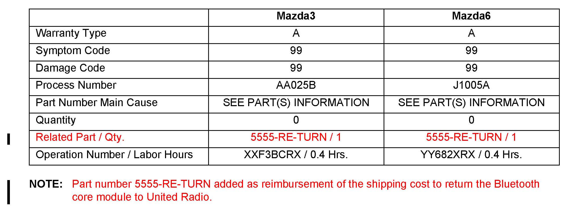 PROCEDURE A: 2010-2011 Mazda3 / 2010 CX-7