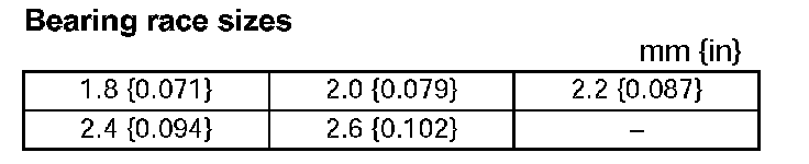 Bearing race sizes mm (in)