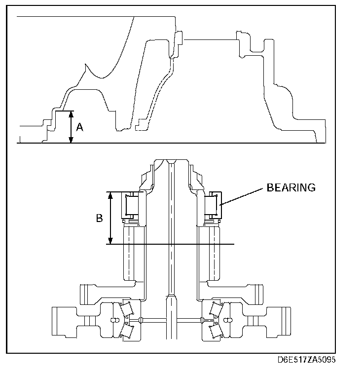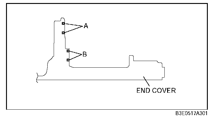 3) Measure clearance B between the converter housing installation surface and the bearing.