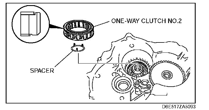 33. Install the spacer and one-way clutch No.2 to the transaxle case.