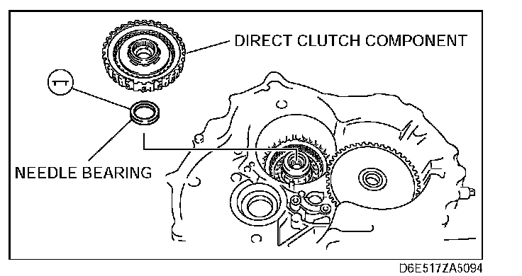35. Apply petroleum jelly to the needle bearing, and secure it to the transaxle case.