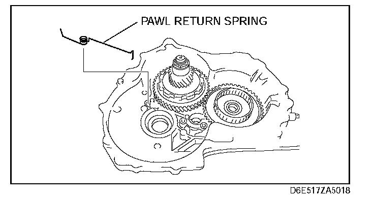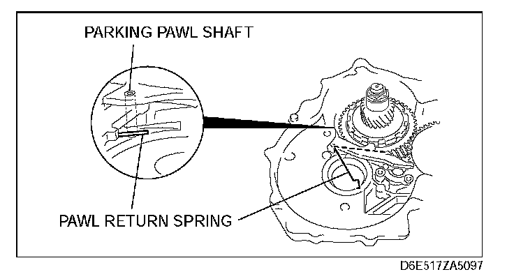 43. Install the pawl return spring to the transaxle case.