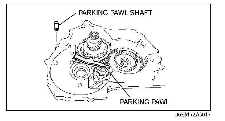 44. Install the packing pawl and parking pawl shaft to the transaxle case.