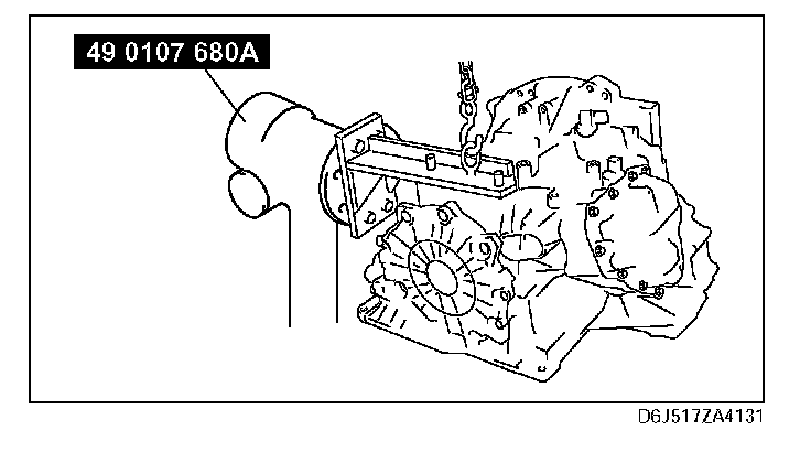 6. Lift the transaxle and mount it on the SST.