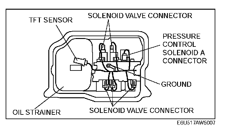 23. Disconnect the solenoid valve connector, ground, and TFT sensor.