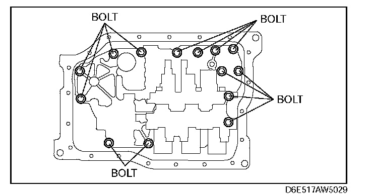 ^ If any old sealant gets into the transaxle during installation of the oil pan, trouble may occur in the transaxle. Remove any old sealant from the transaxle case and oil pan, and clean with cleaning fluids.