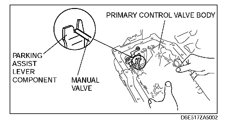 Note: Remove the control valve body by removing the head of the manual valve from the port of the parking assist lever component.