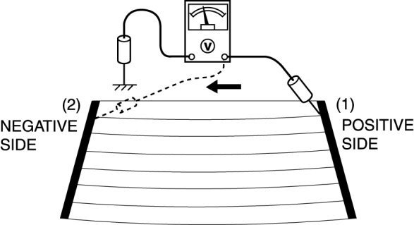 4. Gradually slide the positive lead from the positive side to the negative side and verify that the voltage decreases accordingly.