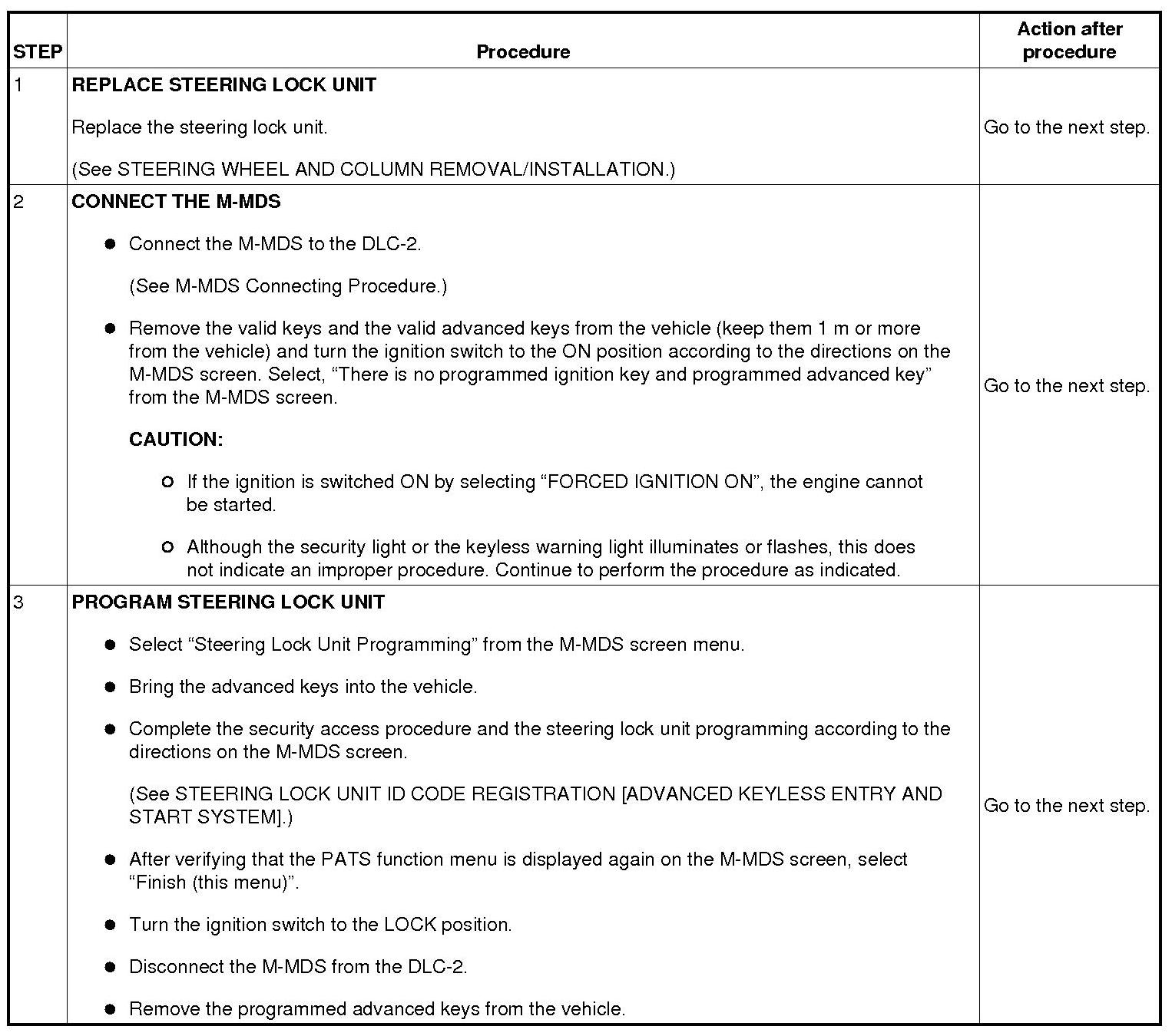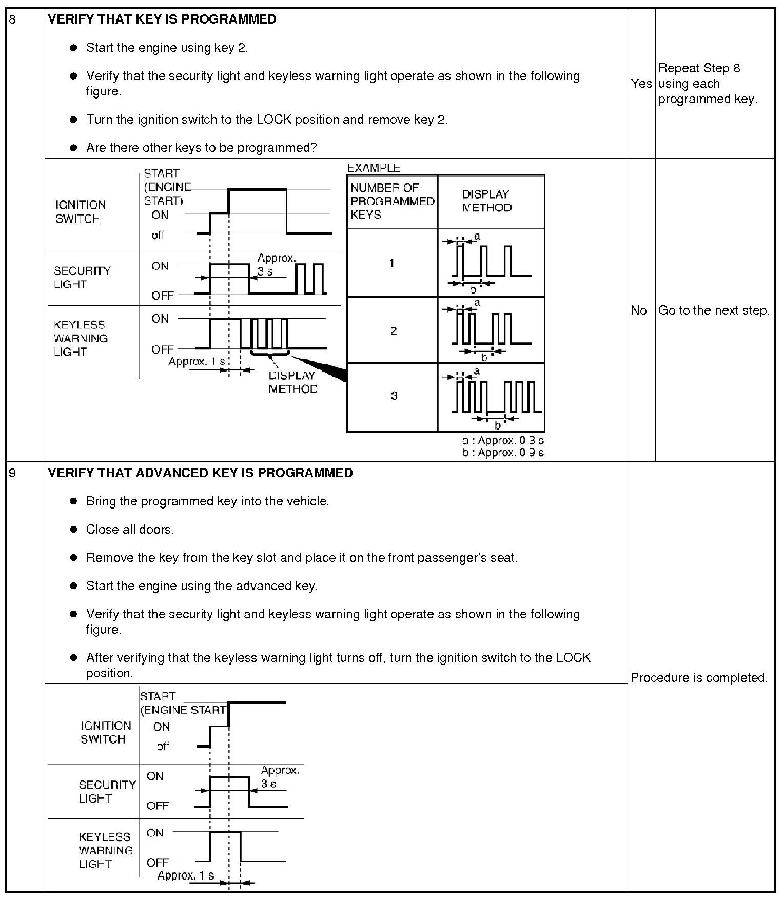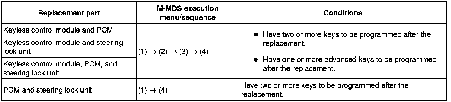 Immobilizer System-Related Parts Service and Programming Procedure Table