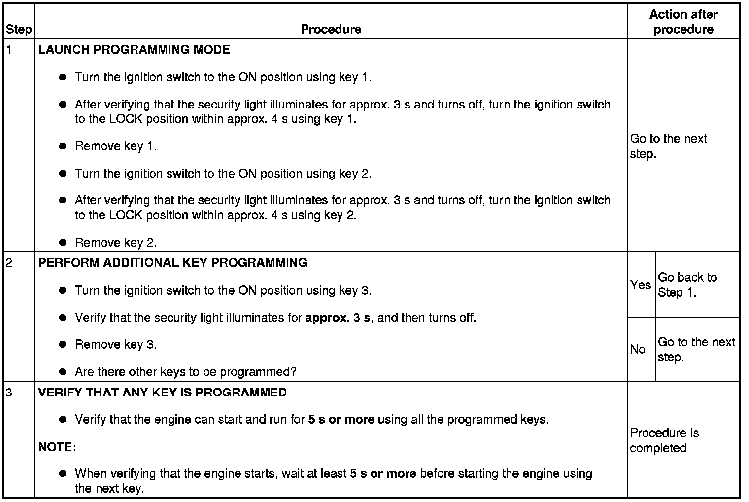 - This procedure is performed for disabling the No.1 Additional Key Programming Procedure (Using Two Valid Keys).