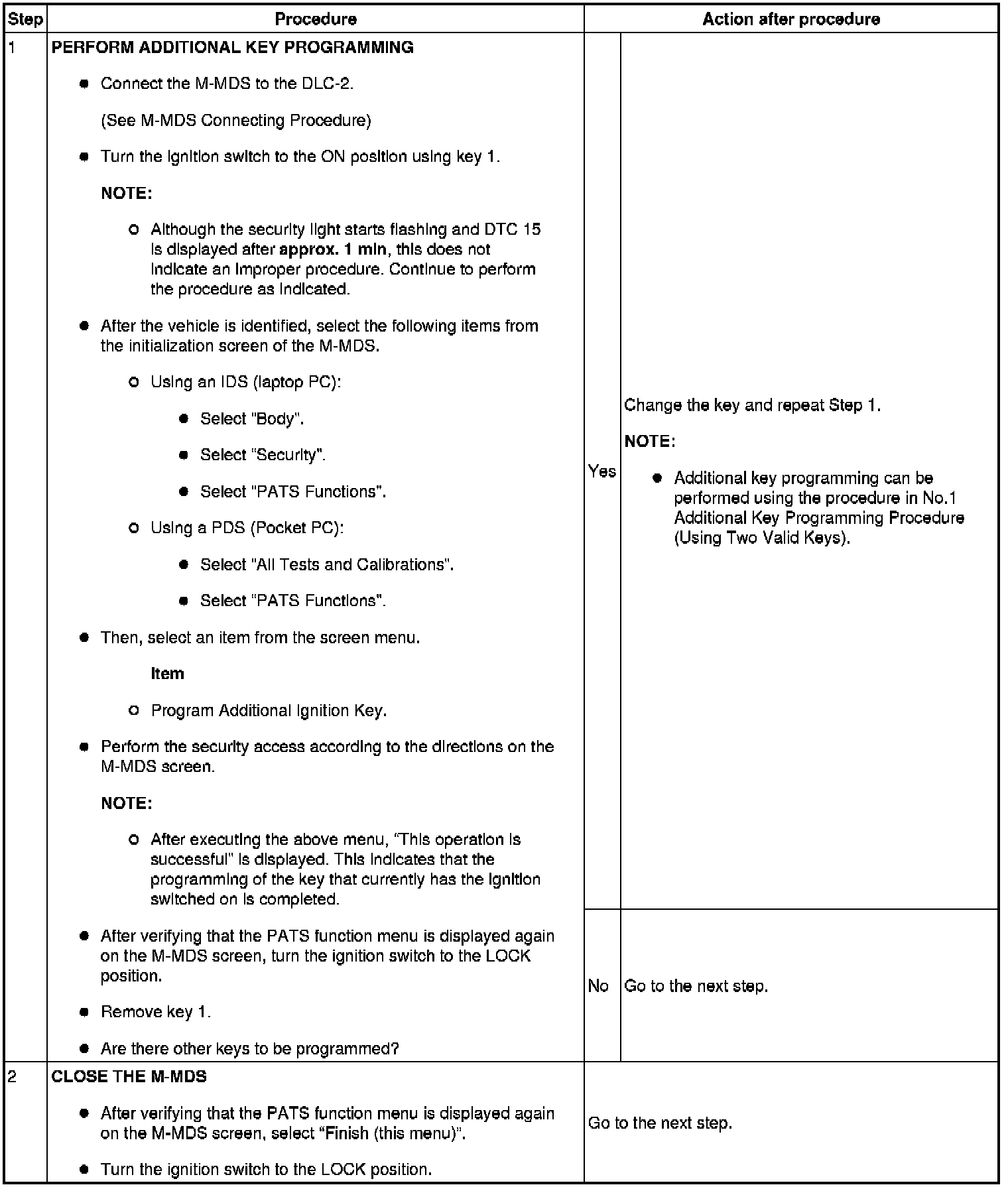 - If a key ID number cannot be programmed and DTC 15 is displayed, the maximum number of programmed keys may have been reached. Verify the number of programmed keys using the M-MDS.