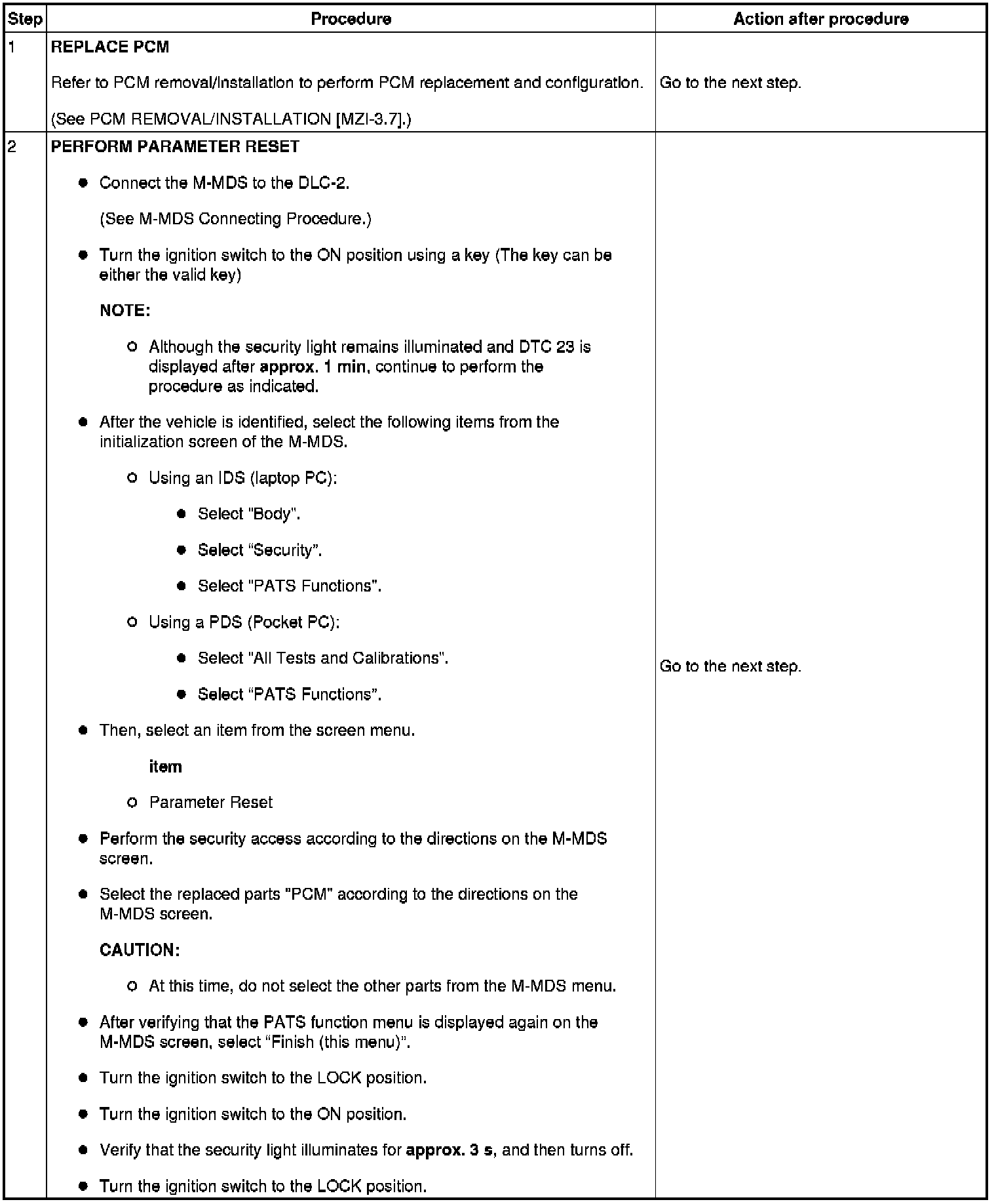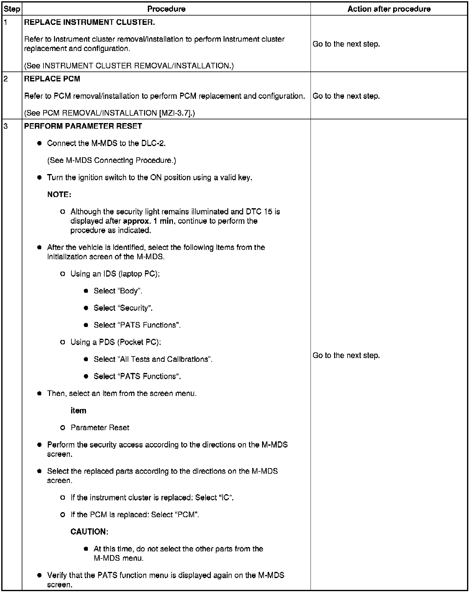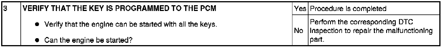 Immobilizer System-Related Parts Service and Programming Procedure Table