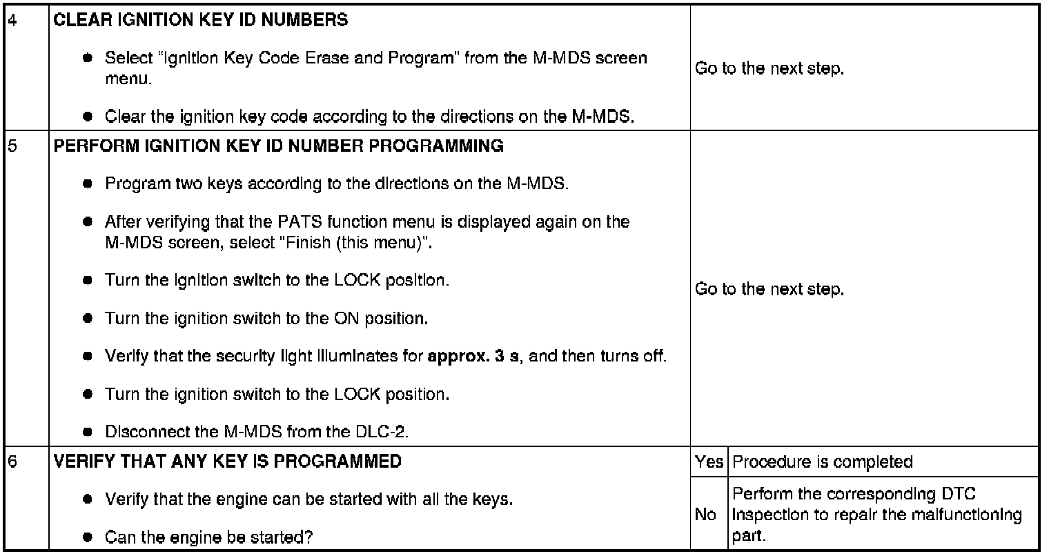 No.6 Programming Procedure Due to Simultaneous Replacement of Immobilizer System-related Parts (PCM and Instrument Cluster)