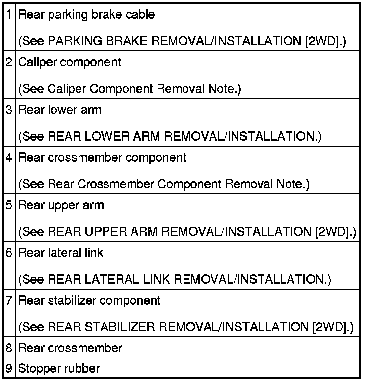 REAR CROSSMEMBER REMOVAL/INSTALLATION [2WD]