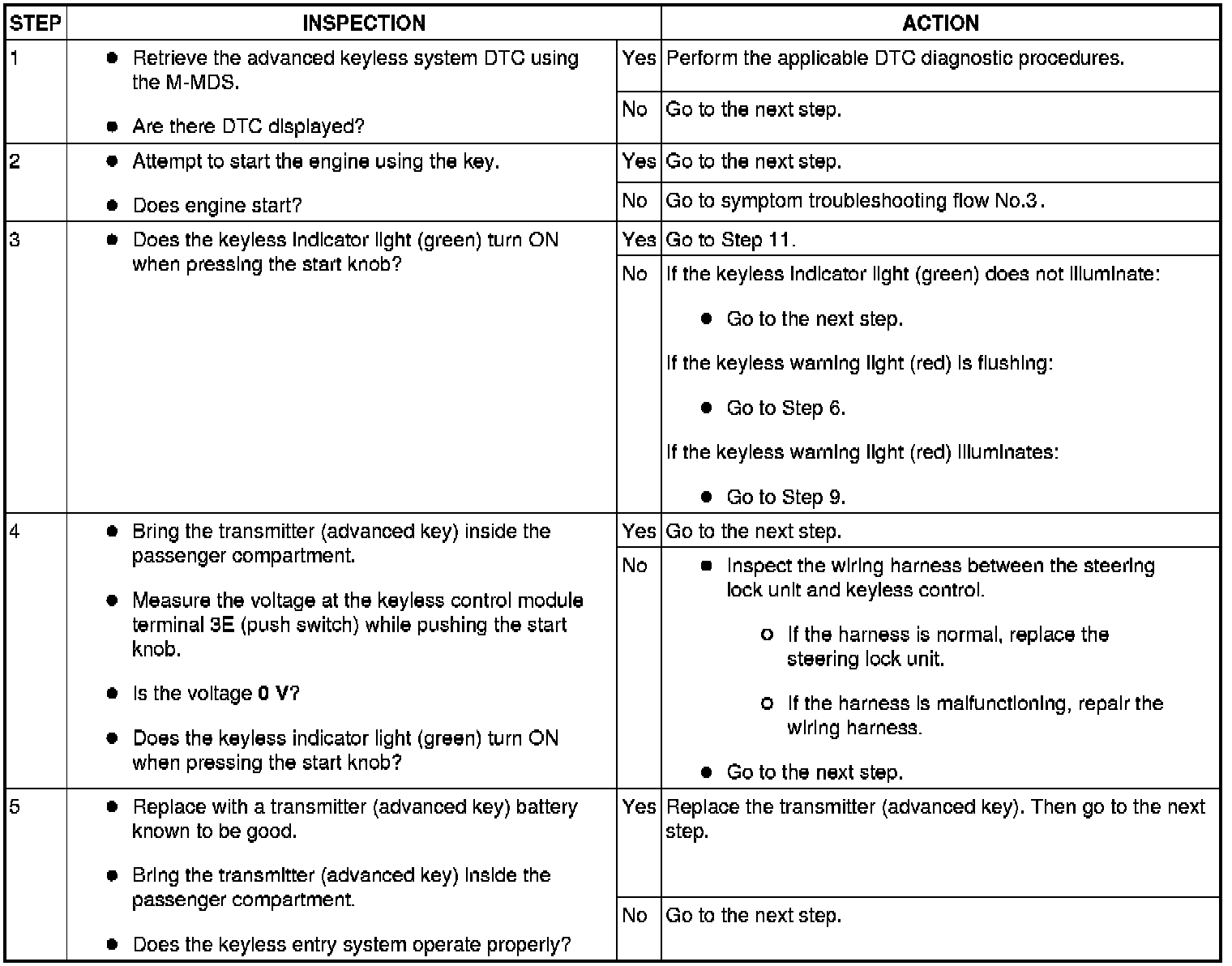NO.4 ADVANCED KEYLESS START FUNCTION INOPERATIVE [ADVANCED