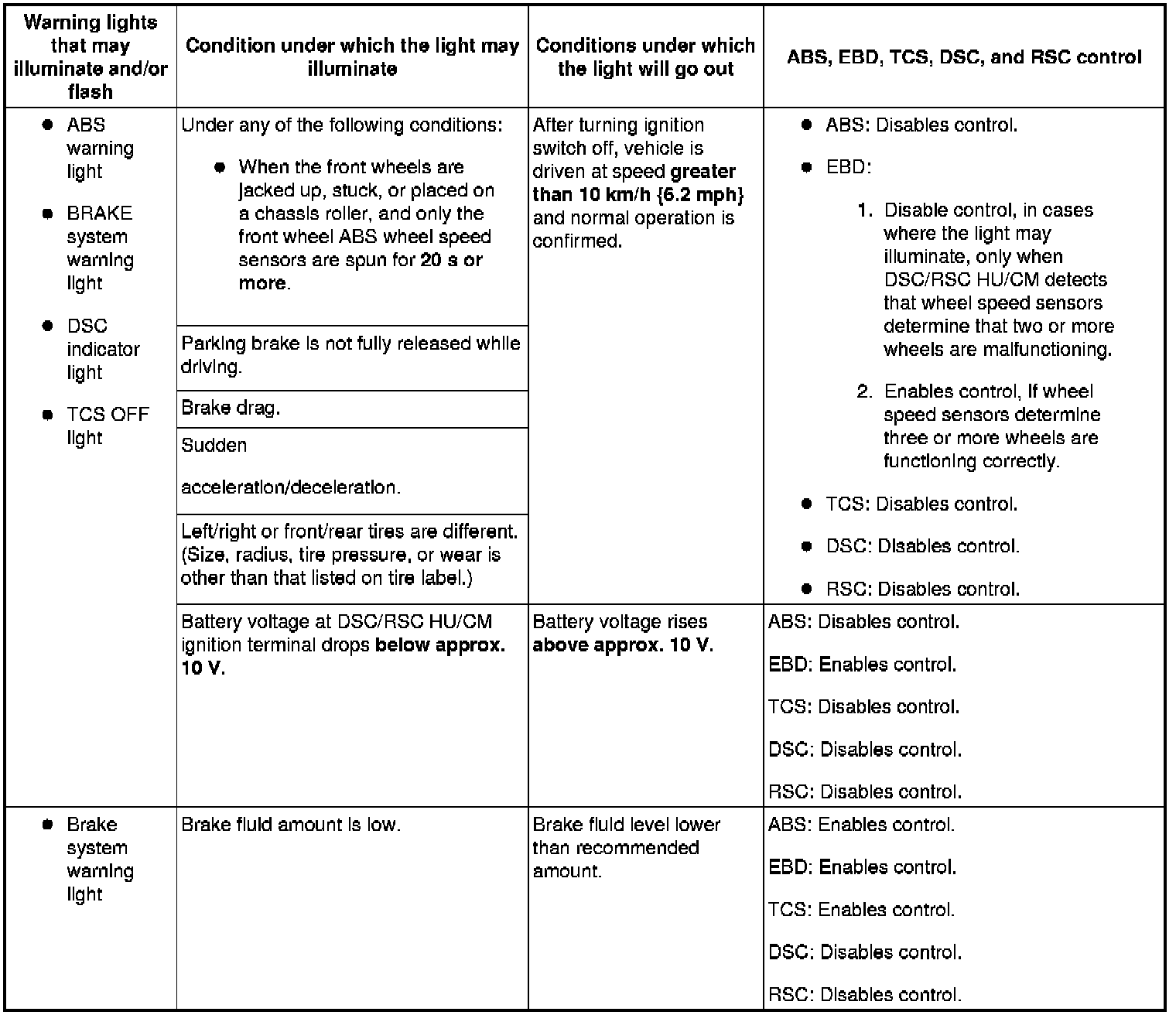 - The control module has an on-board diagnostic function. With this function, the ABS warning light and/or BRAKE system warning light and/or DSC indicator light and/or TCS OFF light will illuminate when there is a problem in the electrical system.