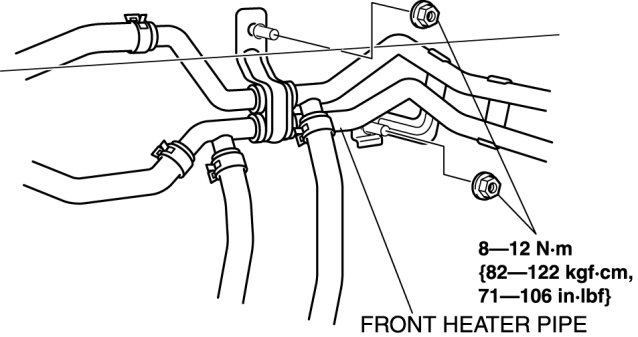 7. Remove the nuts as shown in the figure, and move the front heater pipe.