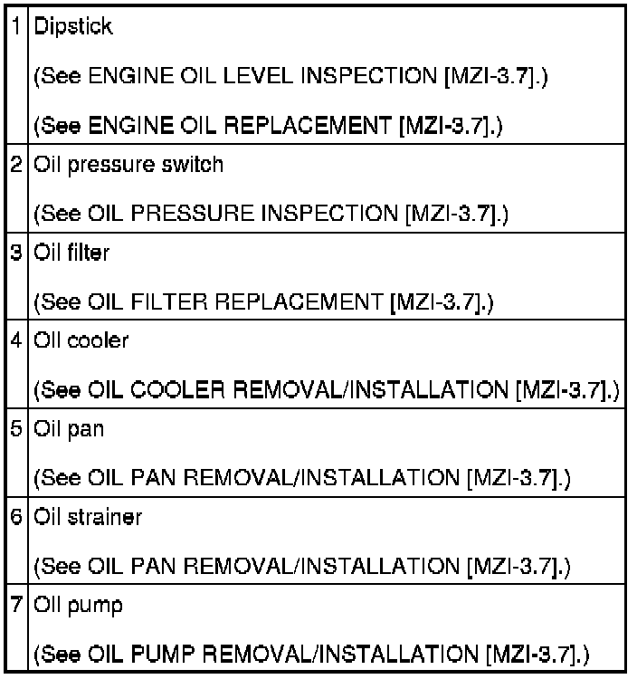 LUBRICATION SYSTEM LOCATION INDEX [MZI-3.7]