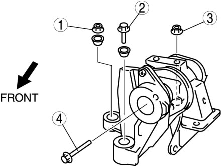 3. Temporarily tighten the No.3 engine mount bolt and nuts in the order shown in the figure.