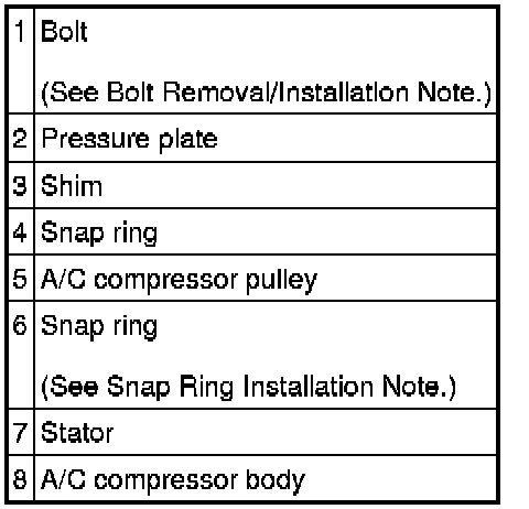 1. When removing or installing the bolt, lock the A/C compressor pulley against rotation using the following procedure.