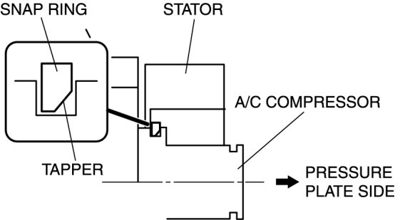 1. Install the snap ring so that the tapered area is on the pressure plate side.