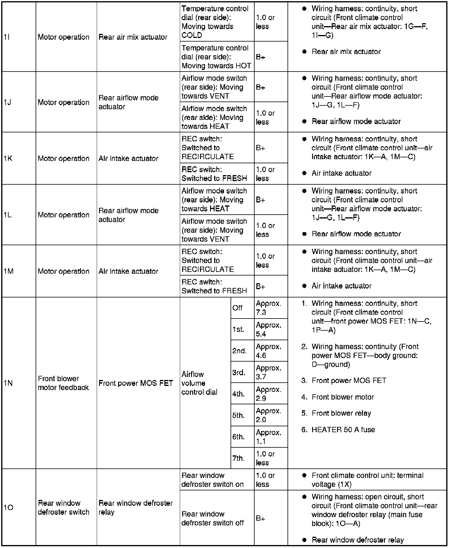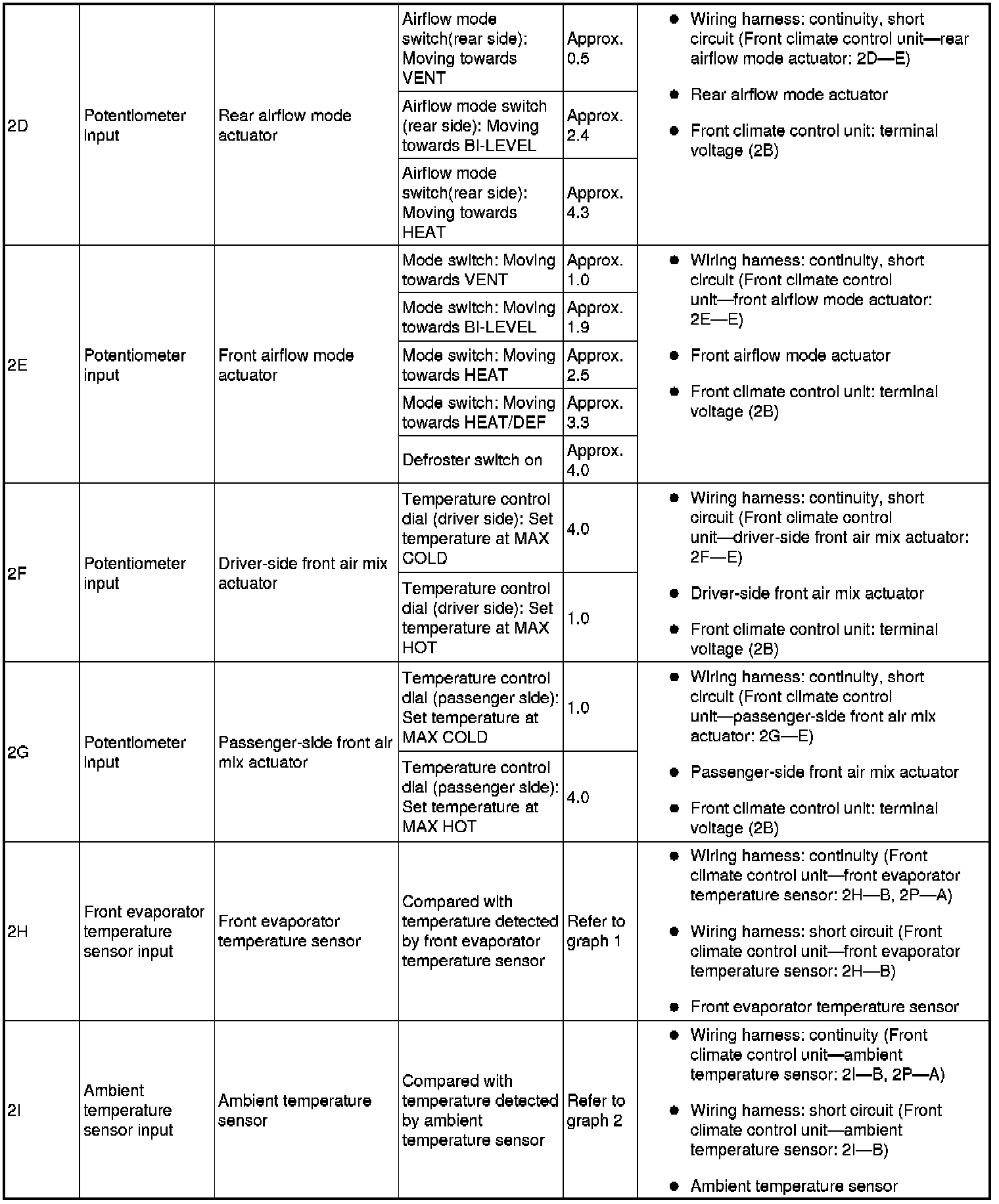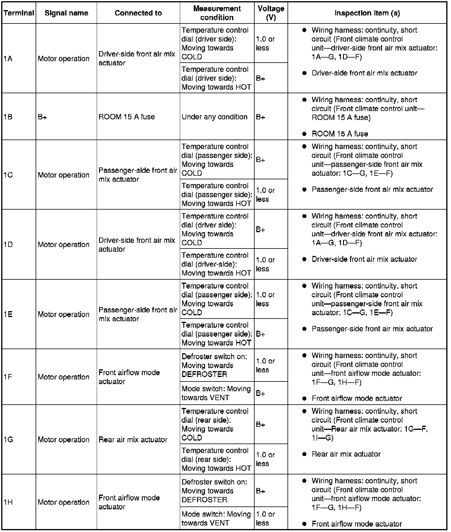 - If the parts under "Inspection item (s)" are found to be normal, replace the front climate control unit.