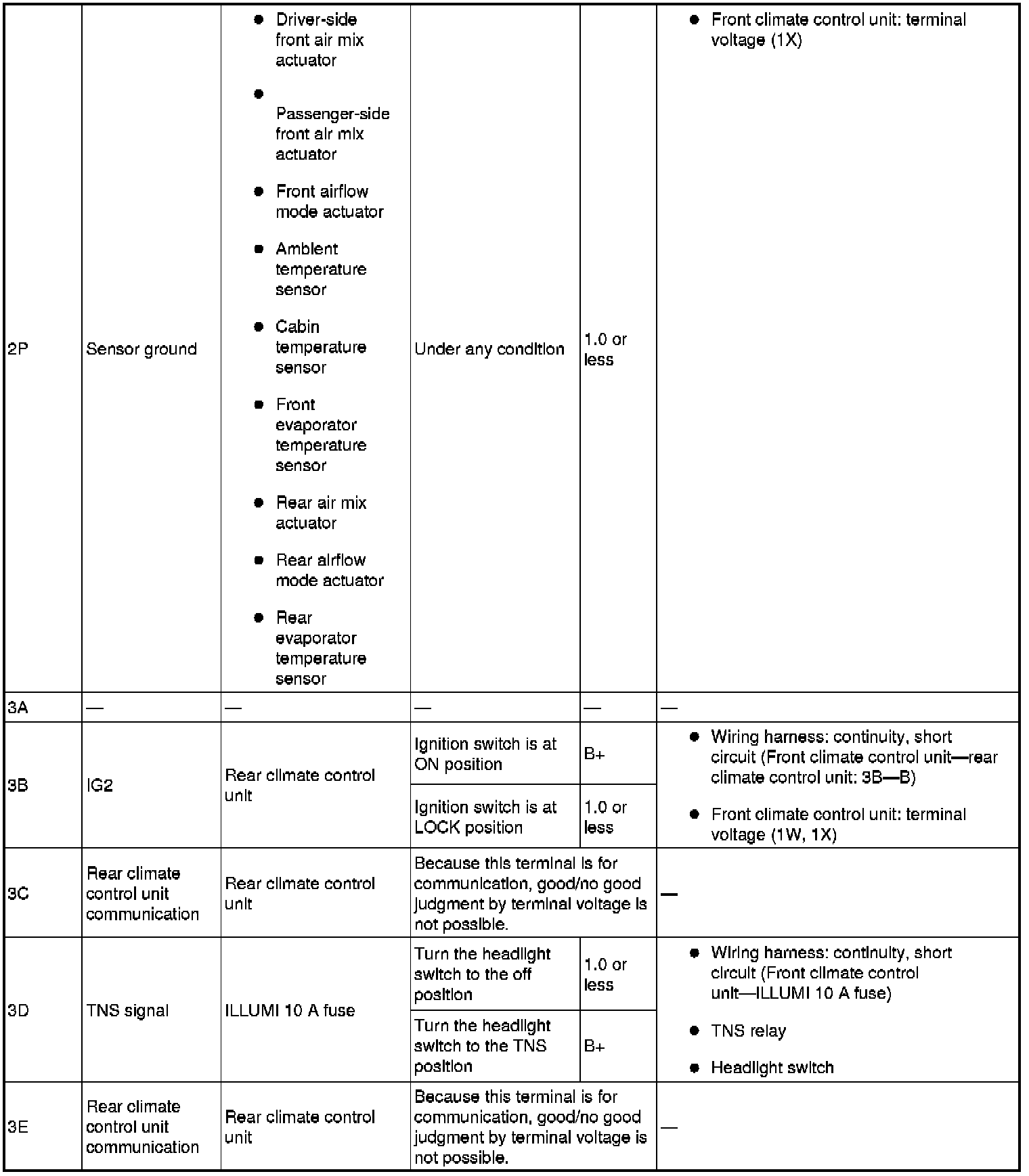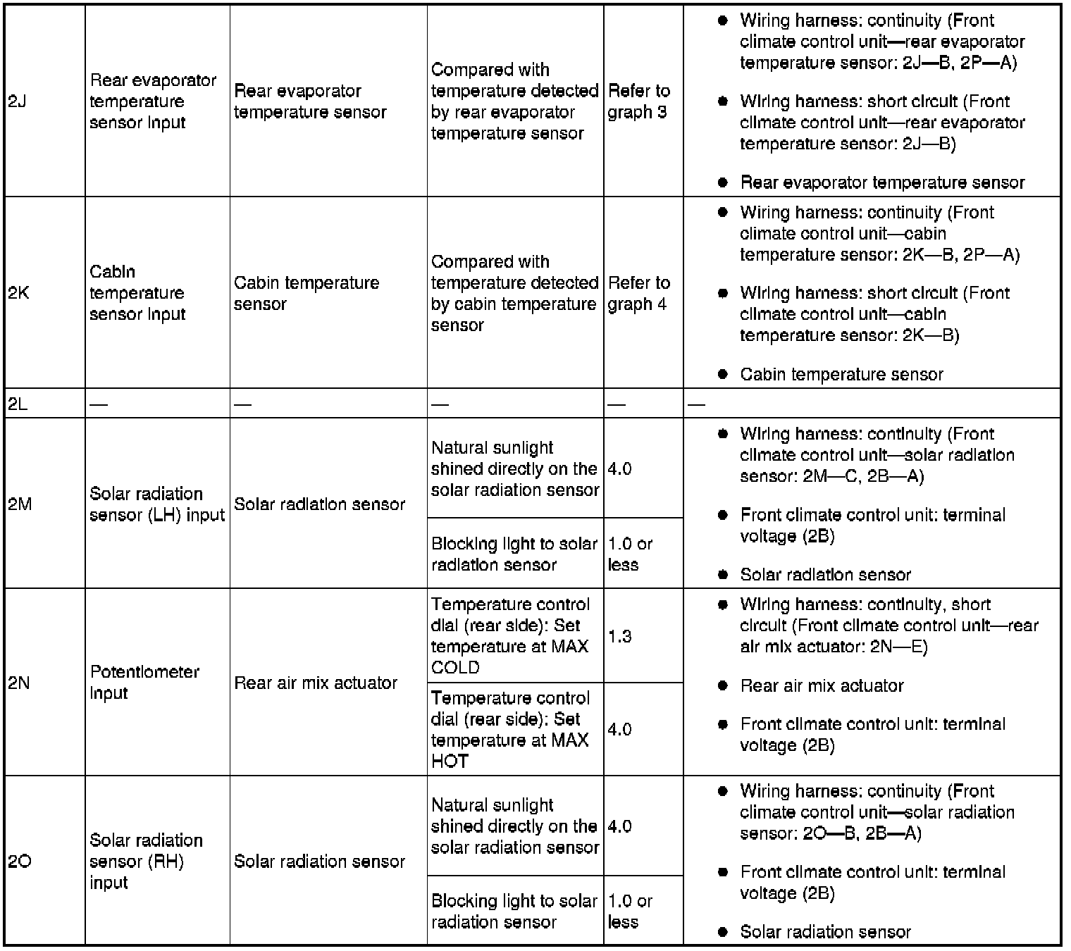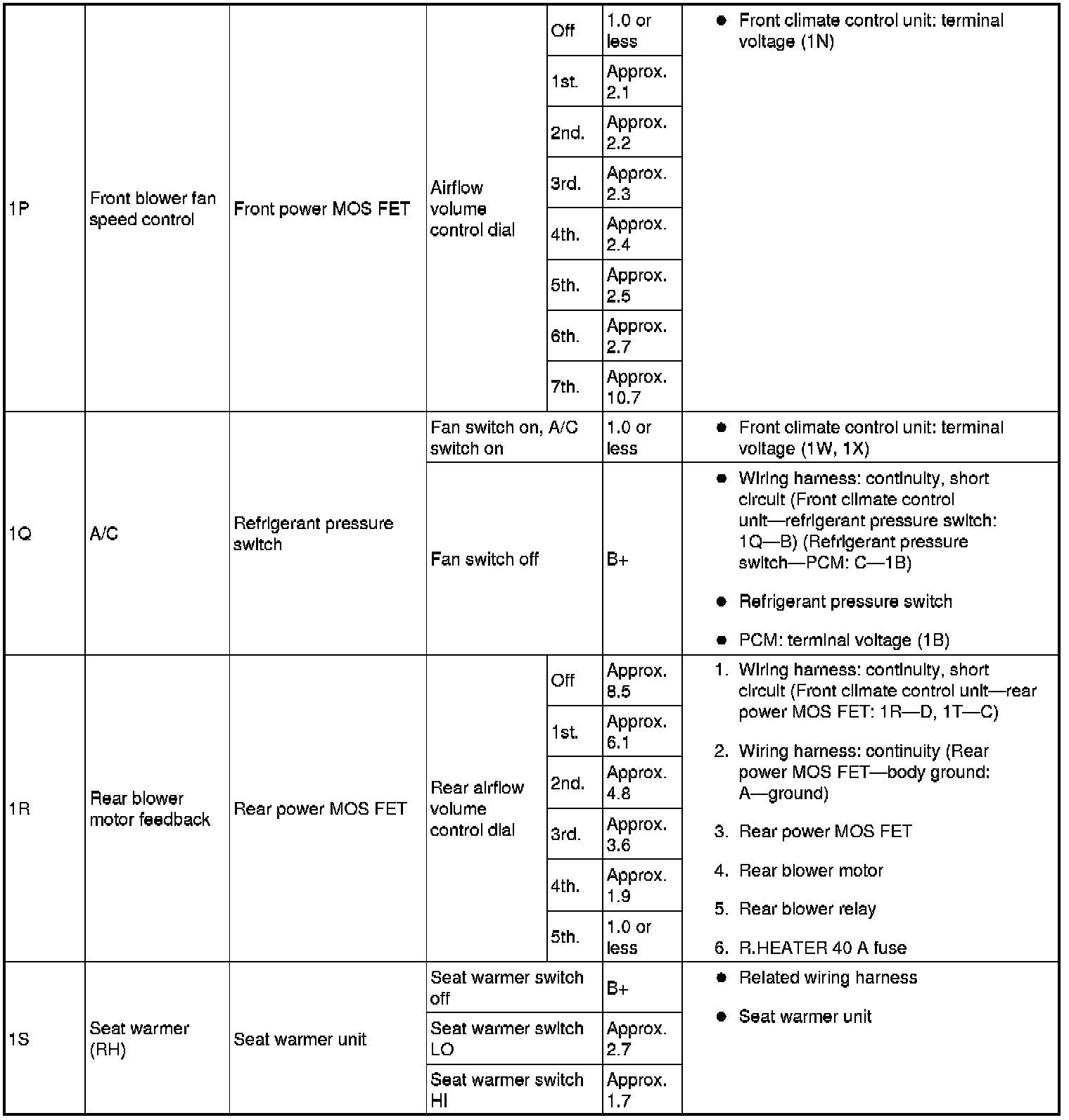 - If the parts under "Inspection item (s)" are found to be normal, replace the front climate control unit.