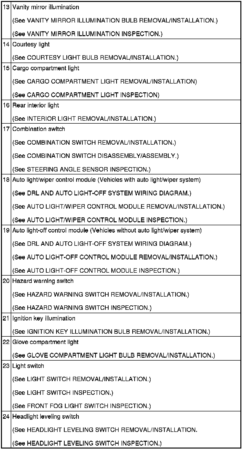 LIGHTING SYSTEMS LOCATION INDEX