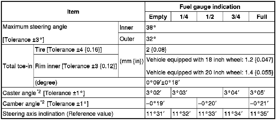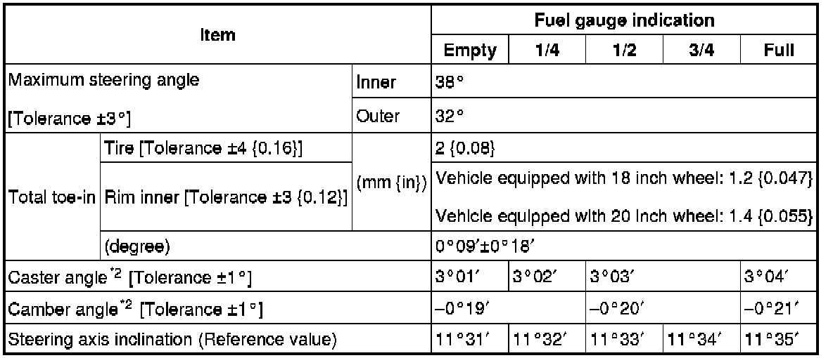 Front wheel alignment [AWD] (Unloaded)*1