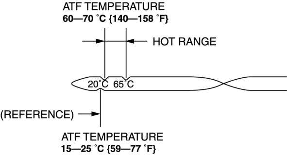 8. Verify that the ATF level is in the HOT range(65 °C {149 °F}) while the engine is idling.