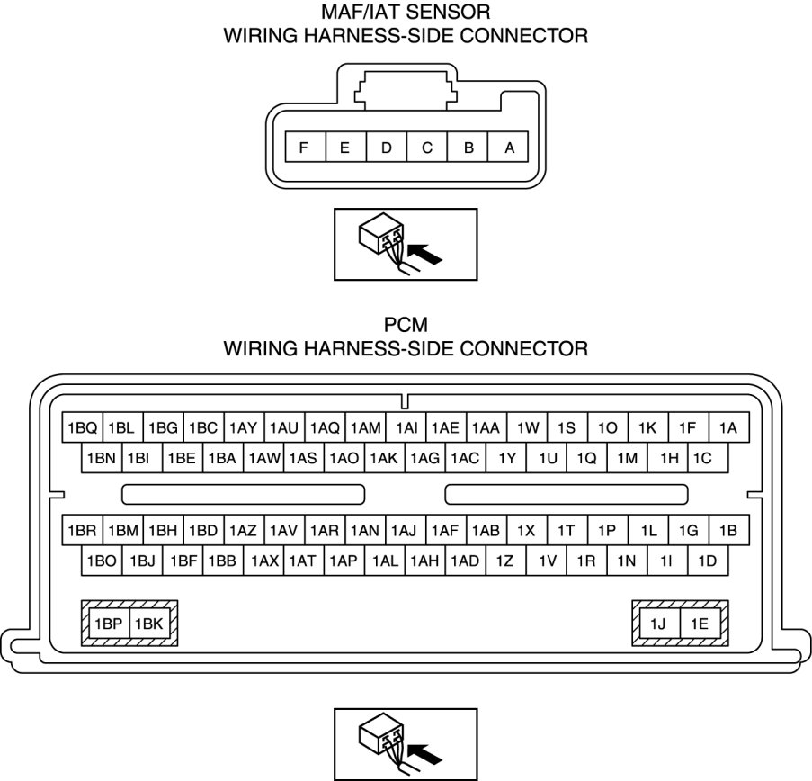 - MAF/IAT sensor terminal F and PCM terminal 1AF