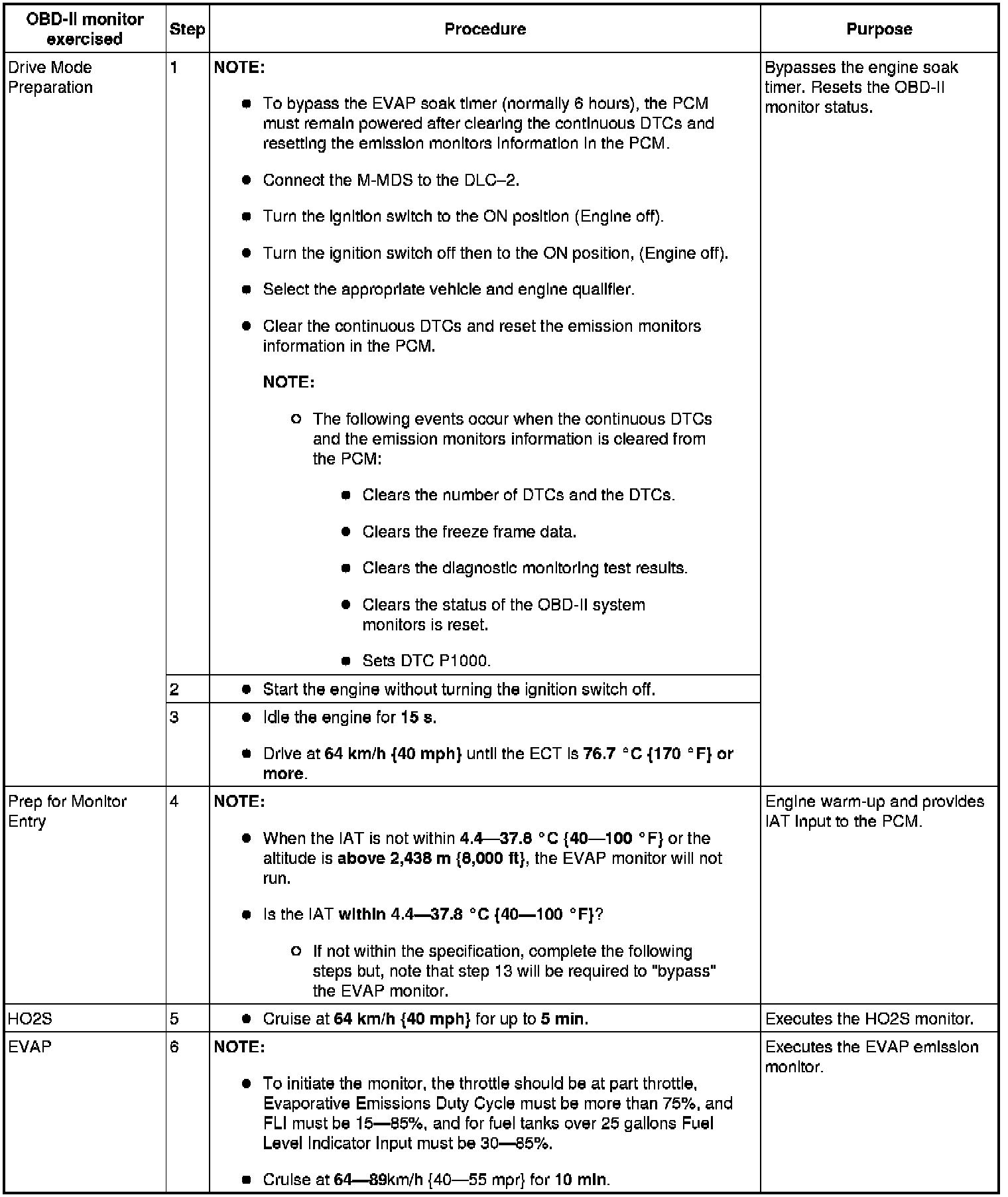 - The following procedure is designed to execute and complete the OBD-II monitors and to clear the DTC P1000.